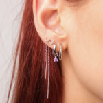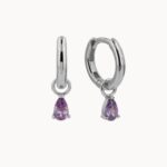 Stříbrné, rhodiované, kruhové náušnice AMAZON jsou doplněny jemným fialovým kamínkem ve spodní části. Je to náušnice, která se hodí jak na první tak i na druhou či třetí dírku do kombinace.