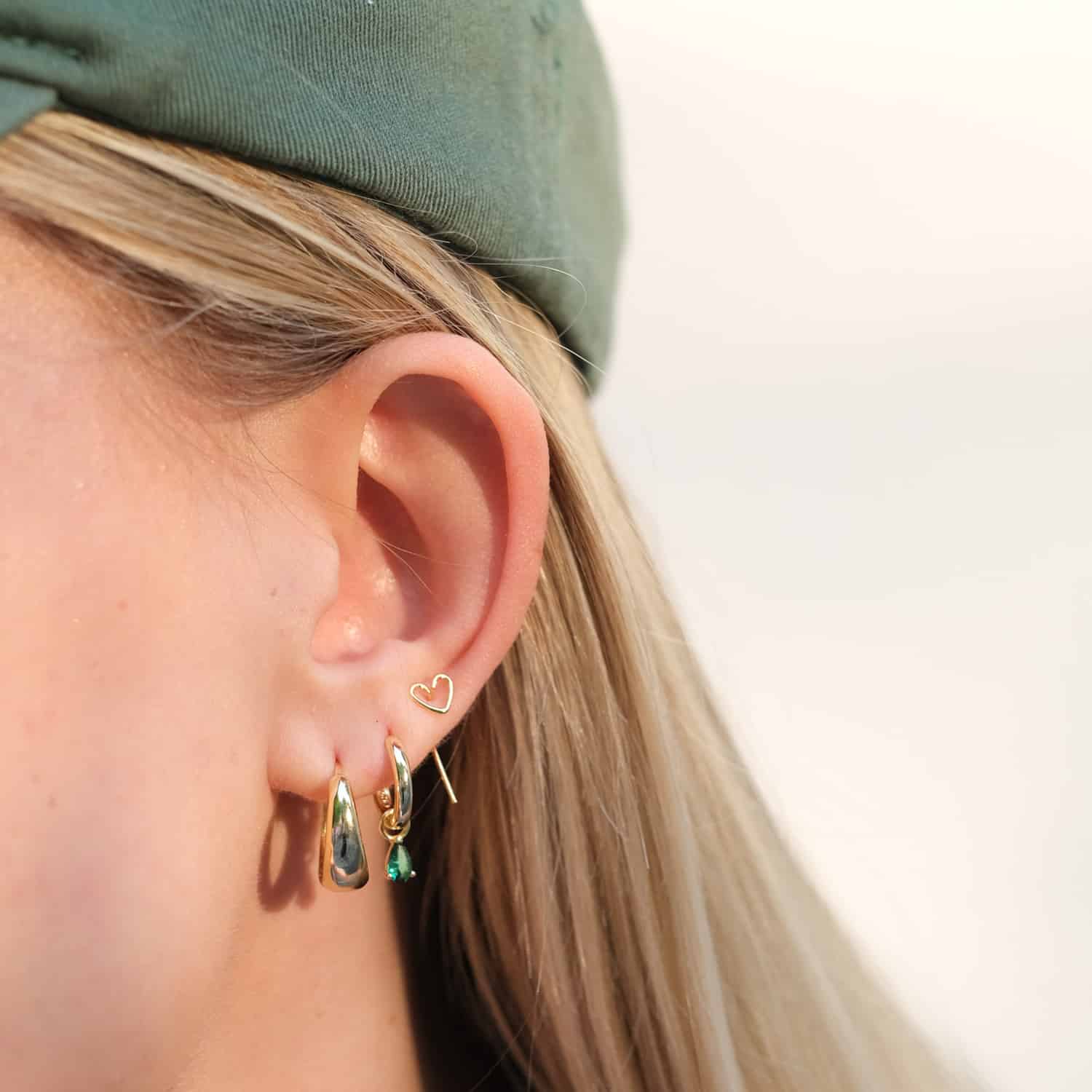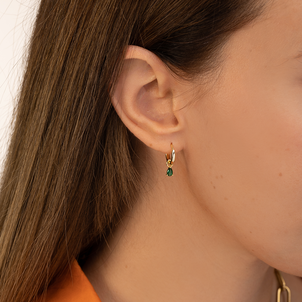Stříbrné, 18karátovým zlatem pozlacené kruhové náušnice AMAZON jsou doplněny jemným zeleným kamínkem ve spodní části. Je to náušnice, která se hodí jak na první tak i na druhou či třetí dírku do kombinace.