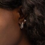Stříbrné, rhodiované, kruhové náušnice O1 jsou v přední části zdobeny více zirkony, které dodávají náušnicím luxusnější charakter. Tyto náušnice o tloušťce 1,5mm se perfektně hodí jak na první tak druhou dírku.