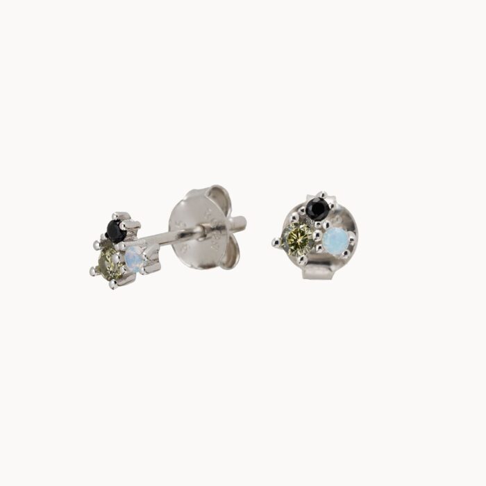 Stříbrné, rhodiované, napichovací náušnice TERRA jsou kombinací bílého a černého zirkonu a kubického zirkonu symbolizujícího štěstí a lásku – opálu. Tyto jemné náušnice doplní váš outfit a krásně se hodí nejen jako náušnice na první, ale i na druhou nebo třetí dírku.