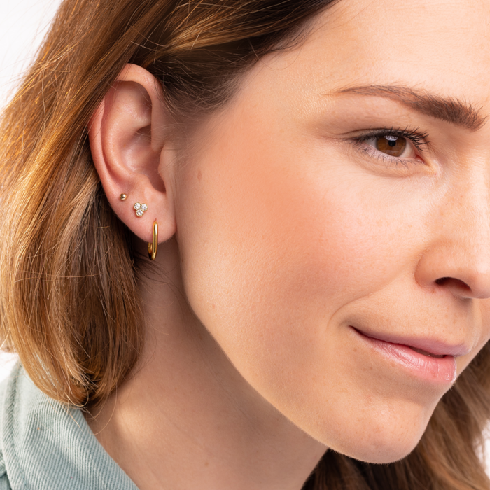 Stříbrná, rhodiovaná piercing náušnice MOIRY se perfektně hodí na druhou, třetí nebo další dírku. Díky ní bude působit vaše ucho stylově a moderně.