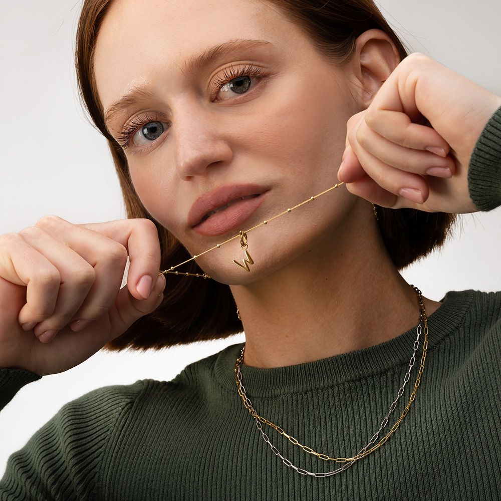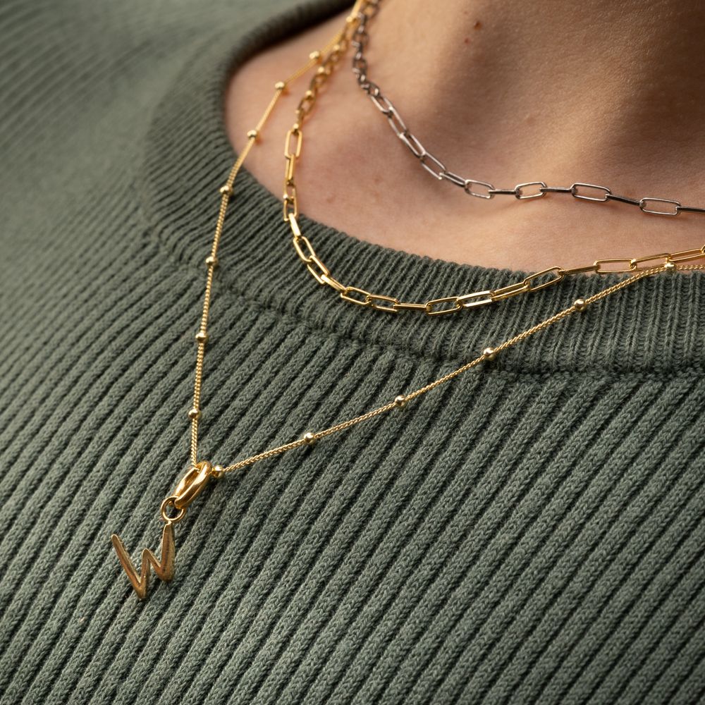Zlatý přívěsek W je vyroben z chirurgické hypoalergenní oceli, pozlacený 18karátovým zlatem. Je doplněn otvíracím kroužkem, díky kterému jej můžete snadno zavěsit na jakýkoli řetízek nebo na přední kroužek našich náhrdelníků.