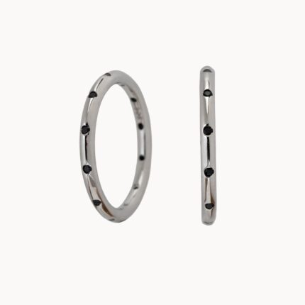 Stříbrný, rhodiovaný prsten DOTTY má po celém obvodu drobné černé zirkony. Díky nim vypadá poutavě, stylově a především jedinečně. Je k dispozici i ve zlaté, ale také ve zlaté verzi s bílými zirkony.