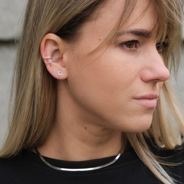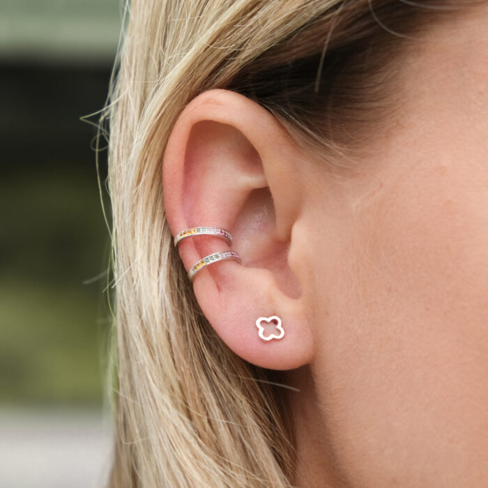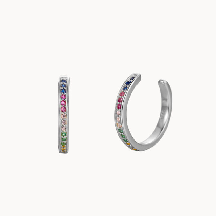 Stříbrný, rhodiovaný earcuff KOLORA je dokonalou volbou pro každou ženu, která chce zvýraznit své ucho stylovou náušnicí bez nutnosti propíchnutí ucha. Earcuff se jednoduše umístí na požadovanou část ucha a v případě potřeby jemným přitlačením zafixuje. Earcuff KOLORA je doplněn o krásné, barevné zirkony, které z něj dělají poutavý kousek, který prozáří každé ucho. Doporučujeme jej umístit na střední část ucha.