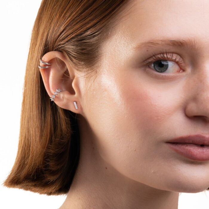 Stříbrný, porhodiovaný earcuff LORA je dokonalou, minimalistickou volbou...