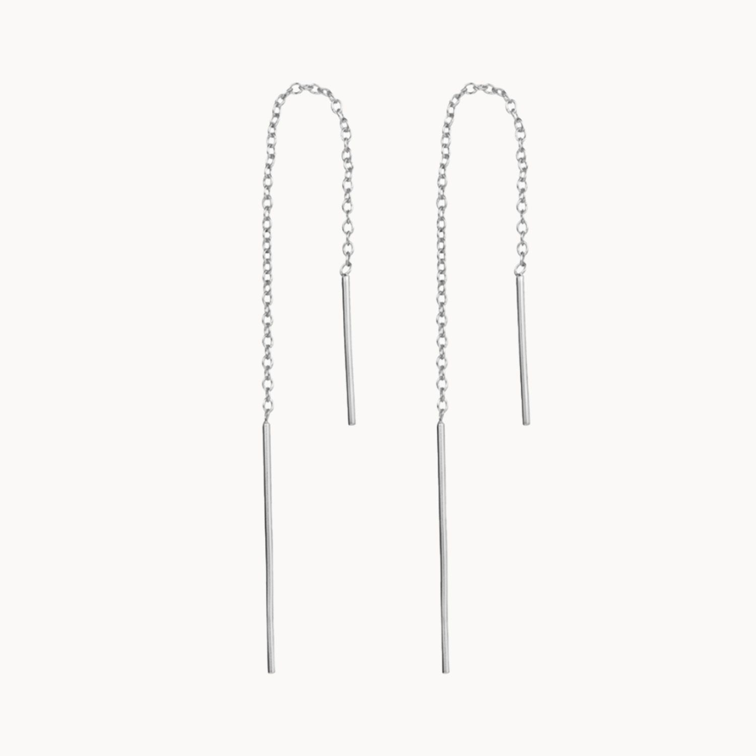 Stříbrné, rhodiované visící náušnice ICEFALL jsou jemným, nadčasovým kouskem. Skládají se z 55 mm dlouhého řetízku a dvou hůlek o délce 25 a 15 mm. Náušnice lze snadno provléknout dírkou bez nutnosti dalšího zapínání. Záleží jen na vás, zda je budete nosit delší nebo kratší, vpředu nebo vzadu.