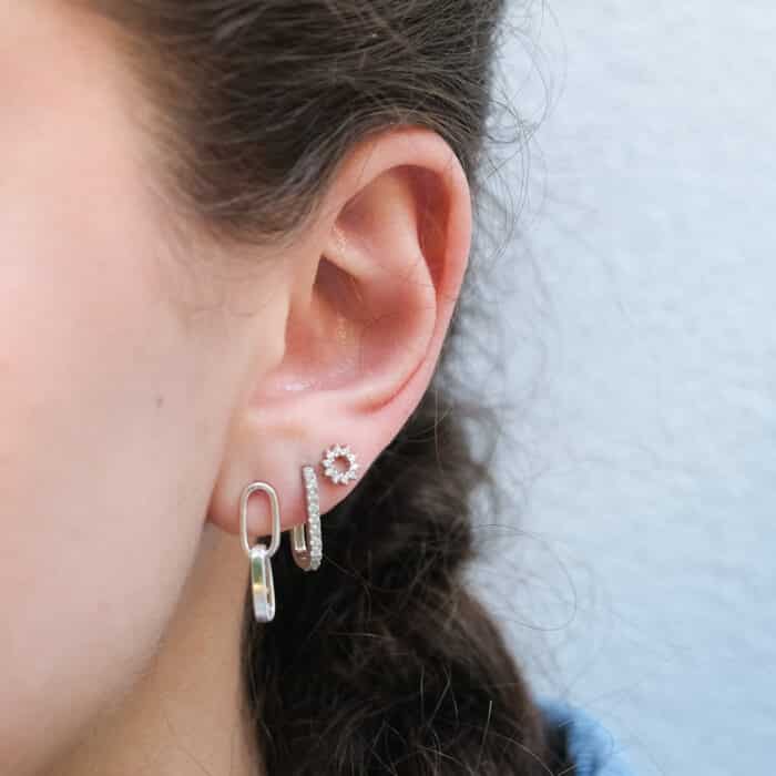 Stříbrné, porhodiované napichovací náušnice PRANA jsou zdobeny zirkony do tvaru slunce. Je to kousek ideální k jakémukoli outfitu na každý den. Náušnice PRANA jsou navíc jednoduše kombinovatelné jak na první, tak i jakékoli další dírce.