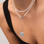 Stříbrný, rhodiovaný náhrdelník OINE je zvýrazněn medailonem ve...