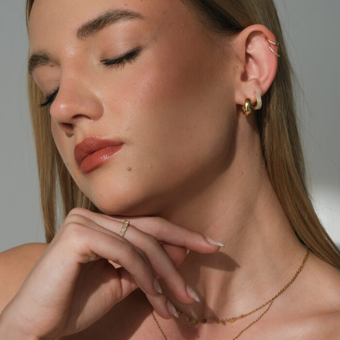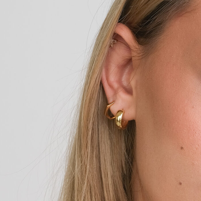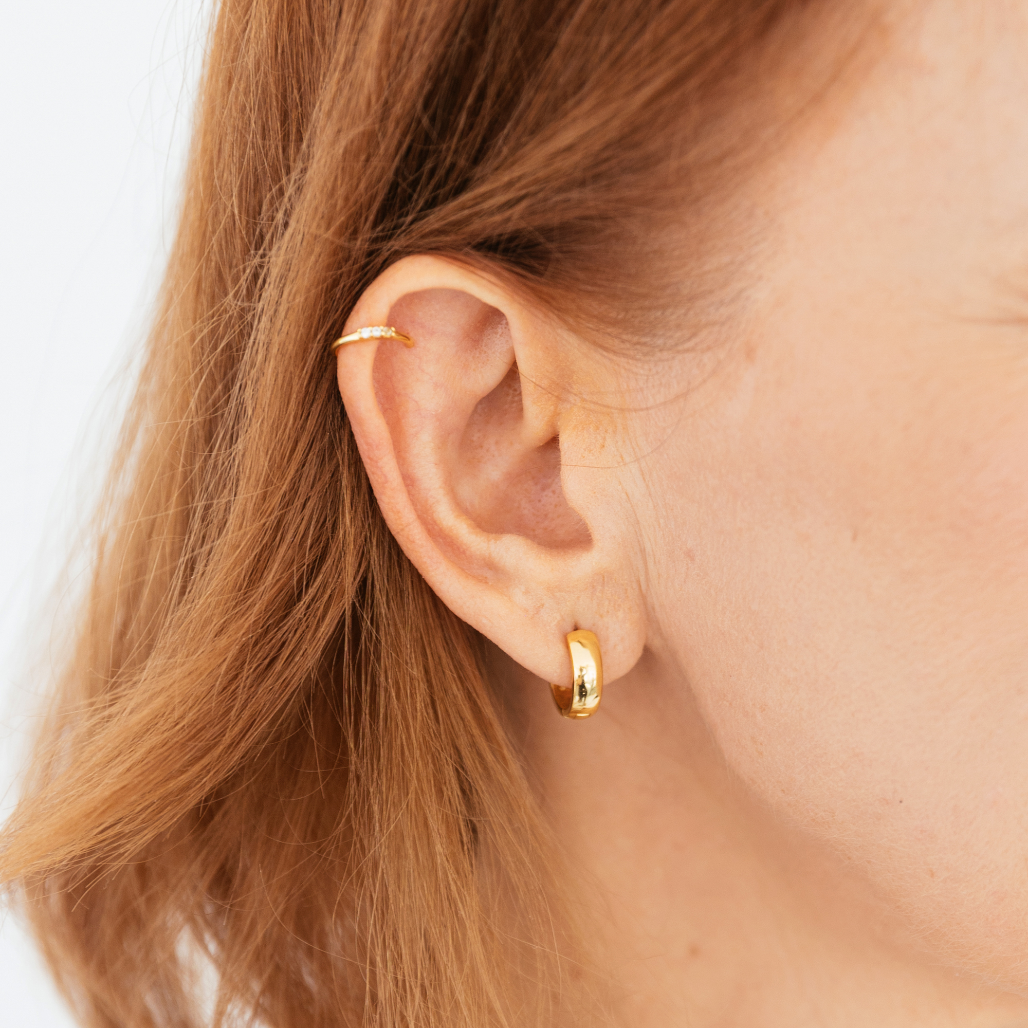 Stříbrné kruhové náušnice CELIN s 18k pozlacením jsou díky své velikosti o průměru 13mm a tloušťce 2mm, ideální volbou pro každodenní nošení. Dokonale se hodí ať už samostatně na první dírku nebo v kombinaci na druhou či třetí dírku.