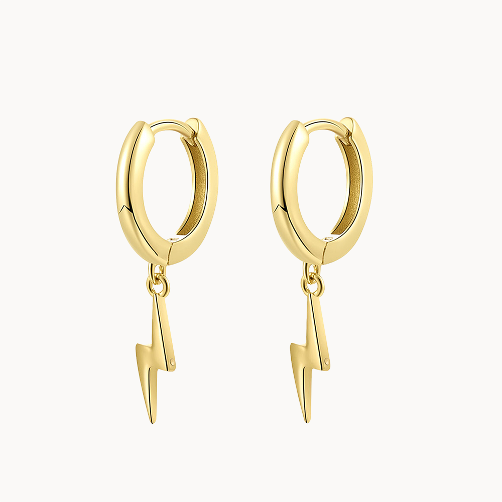 Stříbrné,18k pozlacené náušnice FLASHY jsou stylovým kouskem, který je doplněn o trendový přívěsek ve tvaru blesku ve spodní části. Krásně se hodí jak na první dírku, tak i na druhou či jakoukoli další.