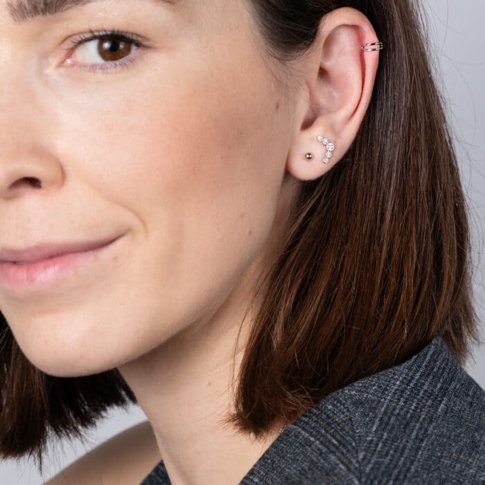 Stříbrná, rhodiovaná piercing náušnice ASTRID je doplněna o...
