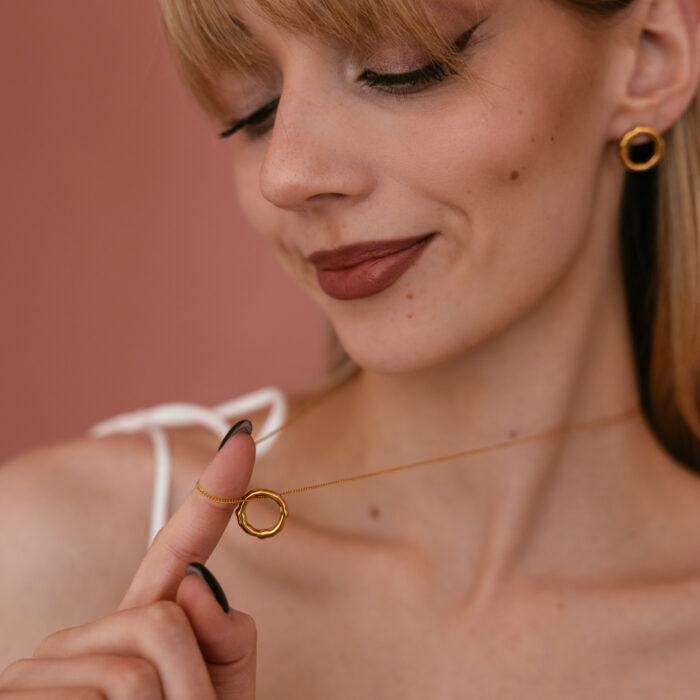 Stříbrný náhrdelník MAREA je vyroben z hypoalergenní, chirurgické oceli pozlacený 18k zlatem. Je inspirován pohybem moře – jemným vlněním, které nikdy není stejné, ale vždy působí přirozeně a harmonicky. Organické tvary šperků připomínají hladinu vody zachycenou v pohybu a dodávají každému kousku jedinečný charakter.