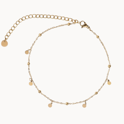 Náramek na nohu BAYA je vyroben z hypoalergenní, chirurgické oceli, pozlacený 14k zlatem. Tvoří ho řetízek, jemné přívěsky a kuličky. Je to jemný, ale zároveň krásný detail, který dokonale doladí každý letní outfit. Patří do naší kolekce „Voděodolných šperků“, což znamená, že jej můžete bez obav nosit každý den, můžete se s ním koupat, sprchovat či provádět vaši oblíbenou aktivitu, aniž byste jej museli sundávat. Stačí si ho dát na nohu na začátku léta – a nemusíte ho sundávat až do jeho konce. Zůstane krásný, zářivý a stále stejně stylový.