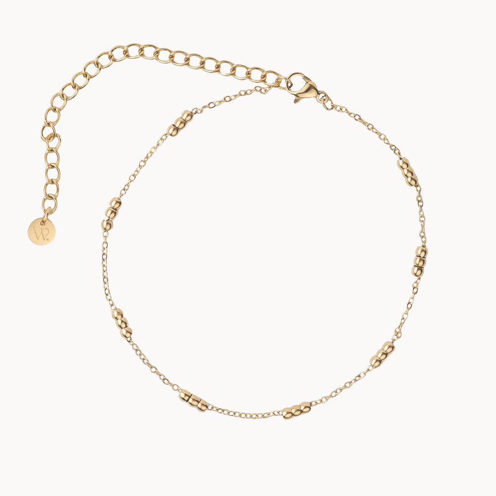 Náramek na nohu ISLA je vyroben z hypoalergenní, chirurgické oceli, pozlacený 14k zlatem. Tvoří ho jemný řetízek s kuličkami. Je to jemný, ale zároveň krásný detail, který dokonale doladí každý letní outfit. Patří do naší kolekce „Voděodolných šperků“, což znamená, že jej můžete bez obav nosit každý den, můžete se s ním koupat, sprchovat či provádět vaši oblíbenou aktivitu, aniž byste jej museli sundávat. Stačí si ho dát na nohu na začátku léta – a nemusíte ho sundávat až do jeho konce. Zůstane krásný, zářivý a stále stejně stylový.