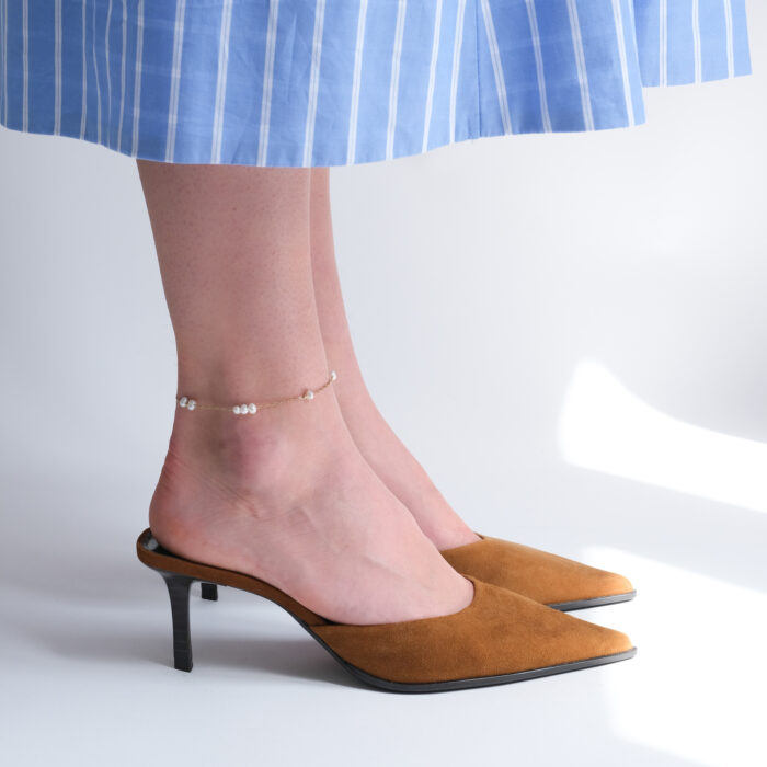 Náramek na nohu SOLEA je vyroben z hypoalergenní, chirurgické oceli, pozlacený 14k zlatem. Tvoří ho jemný řetízek, malé kuličky a říční perly. Je to jemný, ale zároveň krásný detail, který dokonale doladí každý letní outfit. Patří do naší kolekce „Voděodolných šperků“, což znamená, že jej můžete bez obav nosit každý den, můžete se s ním koupat, sprchovat či provádět vaši oblíbenou aktivitu, aniž byste jej museli sundávat. Stačí si ho dát na nohu na začátku léta – a nemusíte ho sundávat až do jeho konce. Zůstane krásný, zářivý a stále stejně stylový. Upozorňujeme, že perličky nemusí být dokonale pravidelného tvaru a vzájemně stejné, jelikož se jedná o přírodní produkt a každá perla je jedinečná.