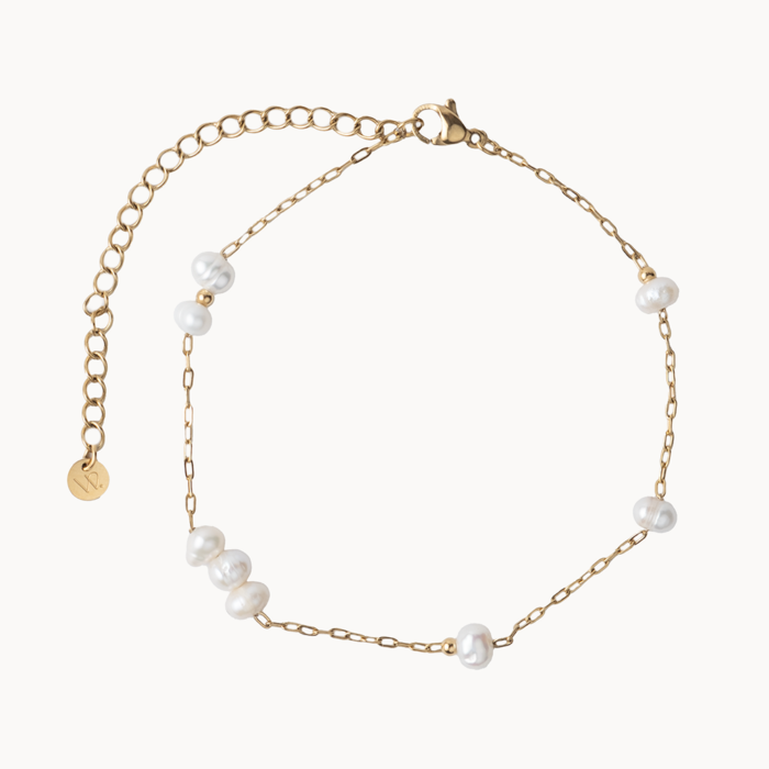 Náramok na nohu SOLEA je vyrobený z hypoalergénnej, chirurgickej ocele, pozlátený 14k zlatom. Tvorí ho jemná retiazka, malé guličky a riečne perly. Je to jemný, no zároveň krásny detail, ktorý dokonale doladí každý letný outfit. Patrí do našej kolekcie „Vodeodolných šperkov“, čo znamená, že ho môžete bez obáv nosiť každý deň, môžete sa s ním kúpať, sprchovať či vykonávať vašu obľúbenú aktivitu bez toho aby ste ho museli dávať dole. Stačí si ho dať na nohu na začiatku leta – a nemusíte ho dávať dole až do jeho konca. Zostane krásny, žiarivý a stále rovnako štýlový. Upozorňujeme, že perličky nemusia byť dokonale pravidelného tvaru a vzájomne rovnaké, nakoľko ide o prírodný produkt a každá perla je jedinečná.