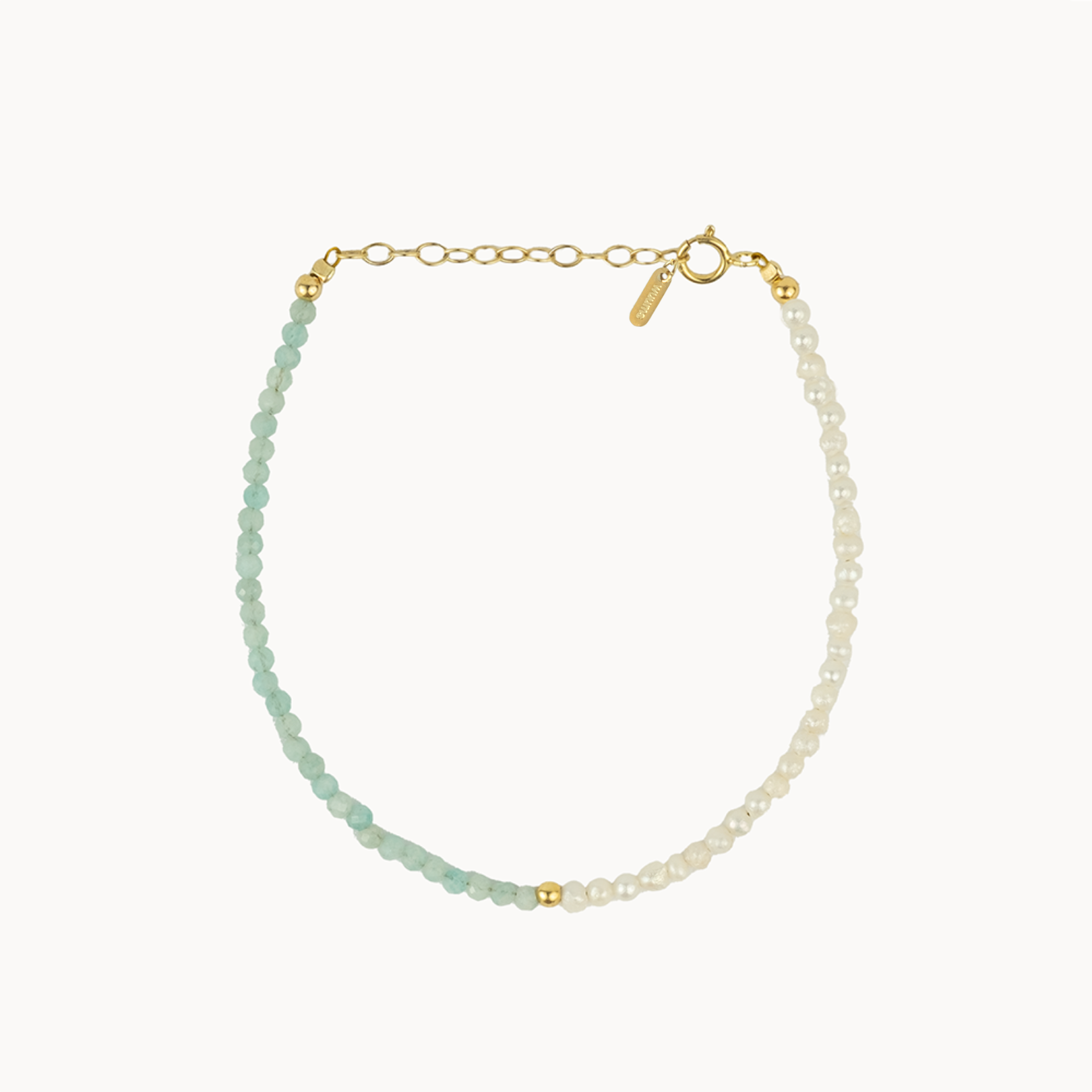 Náramek TURTLE AMAZONIT je vyroben z 925 stříbra, pozlacený 18k zlatem doplněný o pravé říční perly a kameny amazonitu. Upozorňujeme, že perličky nemusí být dokonale pravidelného tvaru a vzájemně stejné, jelikož se jedná o přírodní produkt a každá perla je jedinečná.