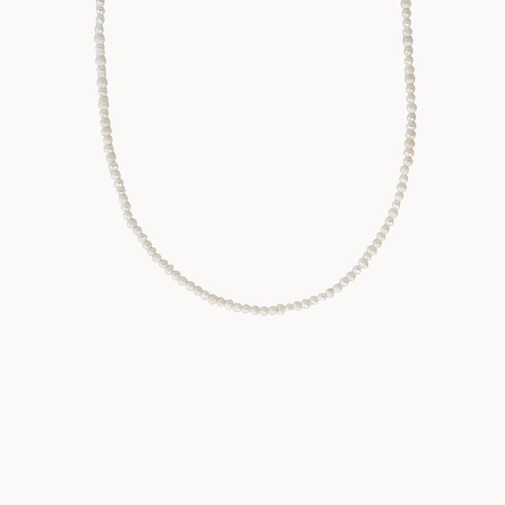 Perlový náhrdelník se stříbrným zapínáním v zadní části je ideální volbou pro každodenní nošení. Náhrdelník PERLA MAXI sestává z perliček o průměru 3.5-4 mm. Je to lehce kombinovatelný kousek, který se hodí ať už k delším řetízkům nebo k náhrdelníkům s přívěskem. Upozorňujeme, že perličky nemusí být dokonale pravidelného tvaru a vzájemně stejné, jelikož jde o přírodní produkt a každá perla je jedinečná.