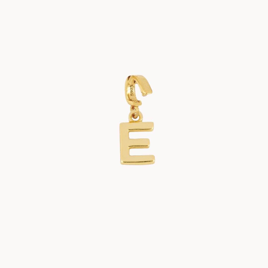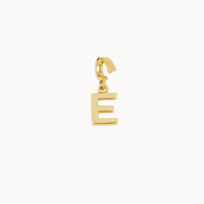 Elegantní přívěsek ve tvaru písmene E, vyrobený ze stříbra, pozlacený 18k zlatem, je jemným detailem s osobním významem. Minimalistický design a kompaktní velikost přibližně 9 mm z něj činí ideální doplněk pro každodenní nošení i vrstvení.