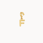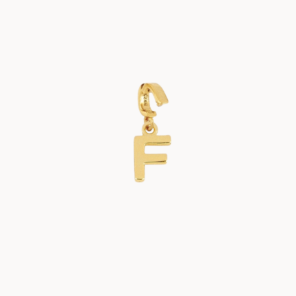 Elegantní přívěsek ve tvaru písmene F, vyrobený ze stříbra, pozlacený 18k zlatem, je jemným detailem s osobním významem. Minimalistický design a kompaktní velikost přibližně 9 mm z něj činí ideální doplněk pro každodenní nošení i vrstvení.