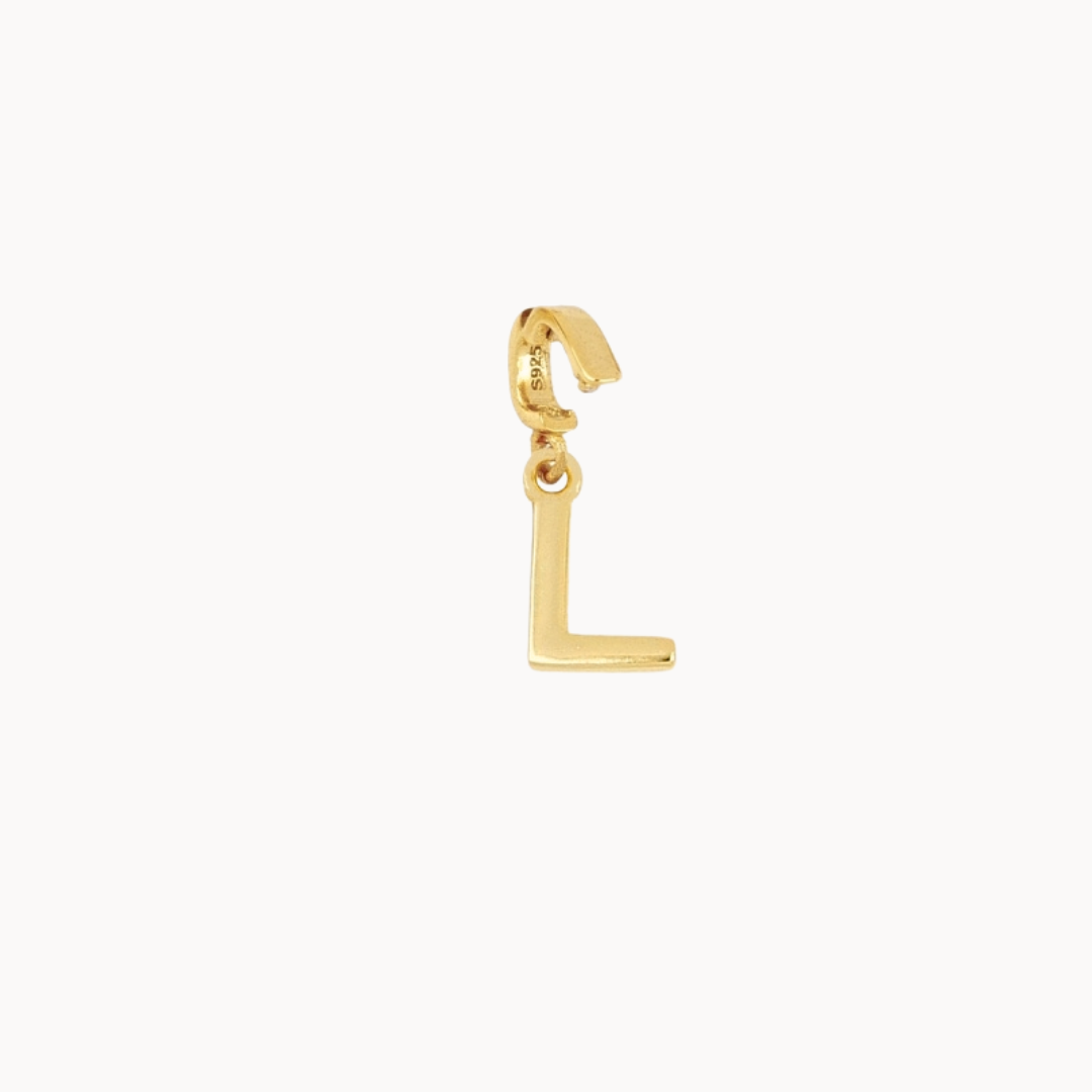 Elegantní přívěsek ve tvaru písmene L, vyrobený ze stříbra, pozlacený 18k zlatem, je jemným detailem s osobním významem. Minimalistický design a kompaktní velikost přibližně 9 mm z něj činí ideální doplněk pro každodenní nošení i vrstvení.